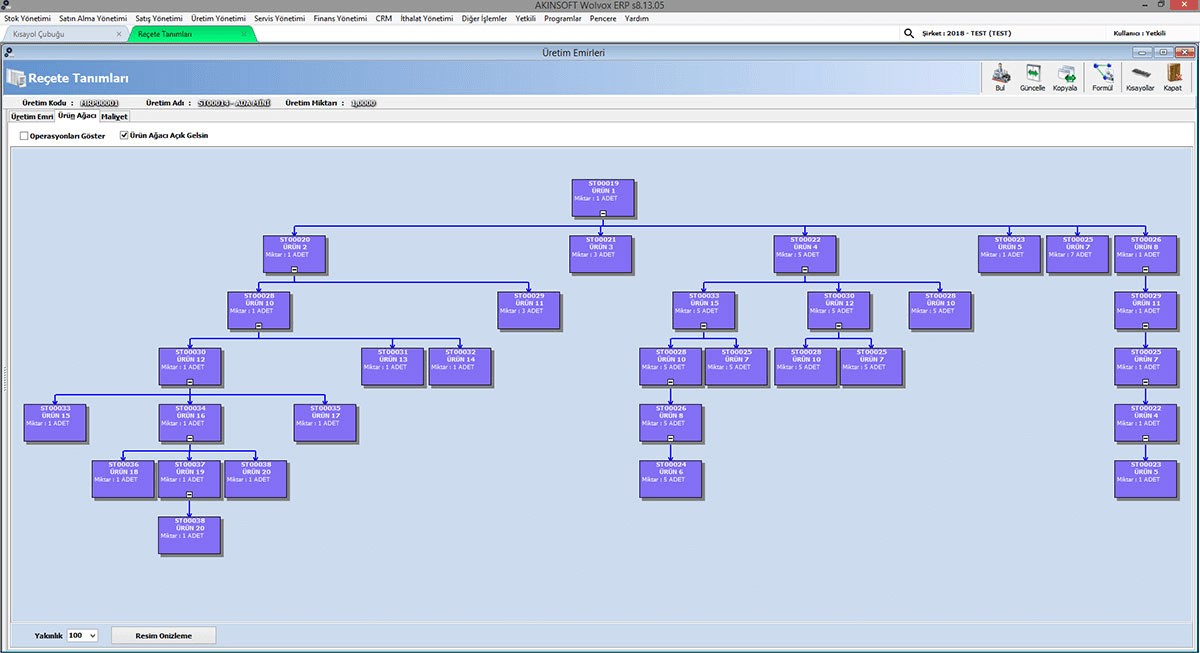 * Cari özel rapor sayesinde ağaç şeklinde rapor alabilir,